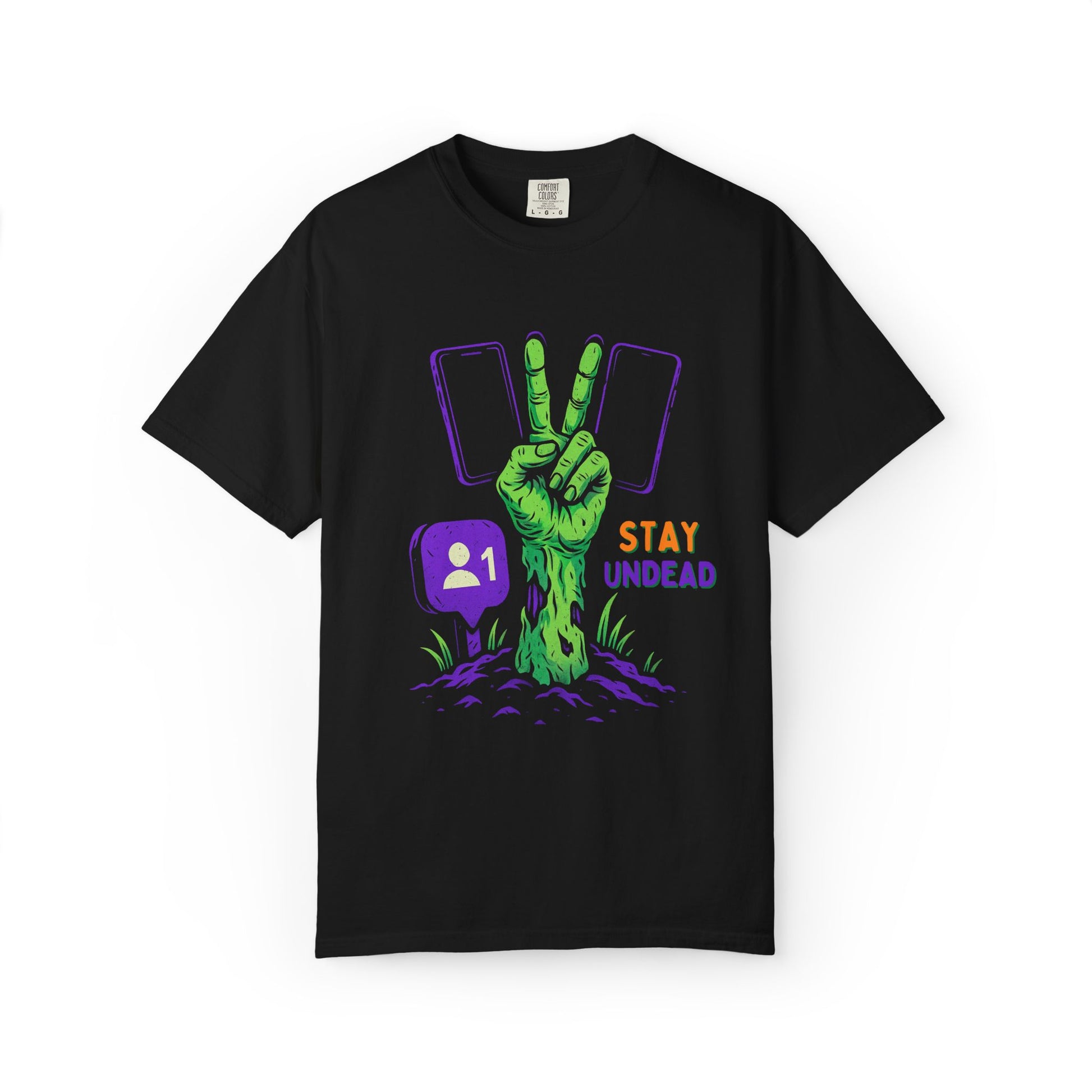 The Zombie Stay Undead Round T-shirt is a must-have for horror fans and those who love all things creepy and cute. Perfect for anyone who enjoys unique social media-inspired apparel.